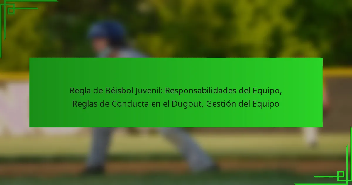 Regla de Béisbol Juvenil: Responsabilidades del Equipo, Reglas de Conducta en el Dugout, Gestión del Equipo