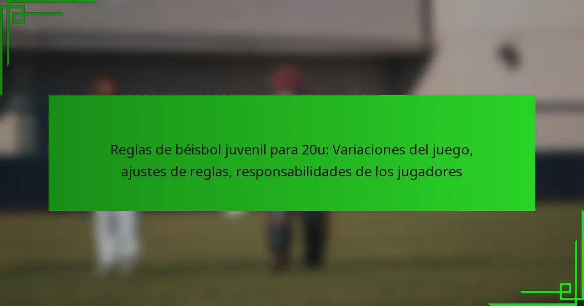 Reglas de béisbol juvenil para 20u: Variaciones del juego, ajustes de reglas, responsabilidades de los jugadores