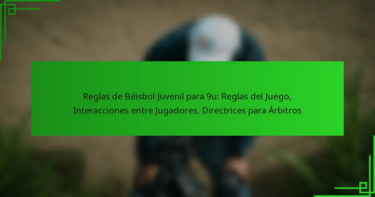Reglas de Béisbol Juvenil para 9u: Reglas del Juego, Interacciones entre Jugadores, Directrices para Árbitros