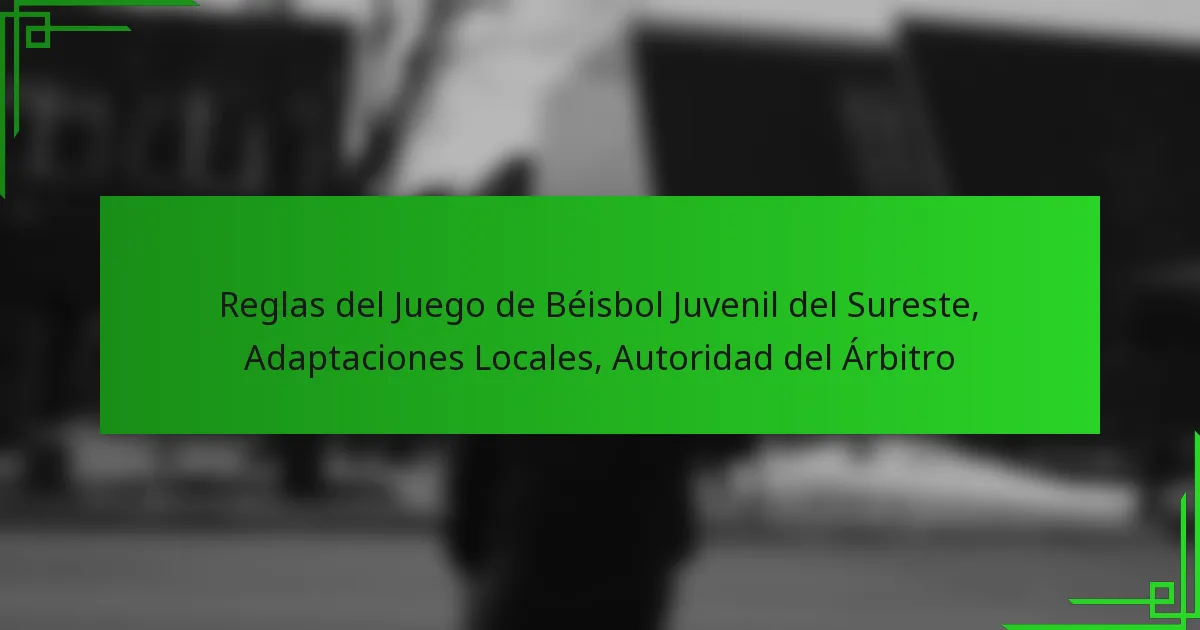 Las reglas del juego de béisbol juvenil en el Sureste tienen como objetivo fomentar el juego limpio, el desarrollo de habilidades y la seguridad de los jóvenes atletas. Estas reglas combinan directrices oficiales con adaptaciones locales diseñadas para satisfacer las necesidades de la comunidad y los grupos de edad específicos de los jugadores. Los árbitros son esenciales en este marco, ya que mantienen las reglas y aseguran una experiencia positiva para todos los involucrados en el juego.